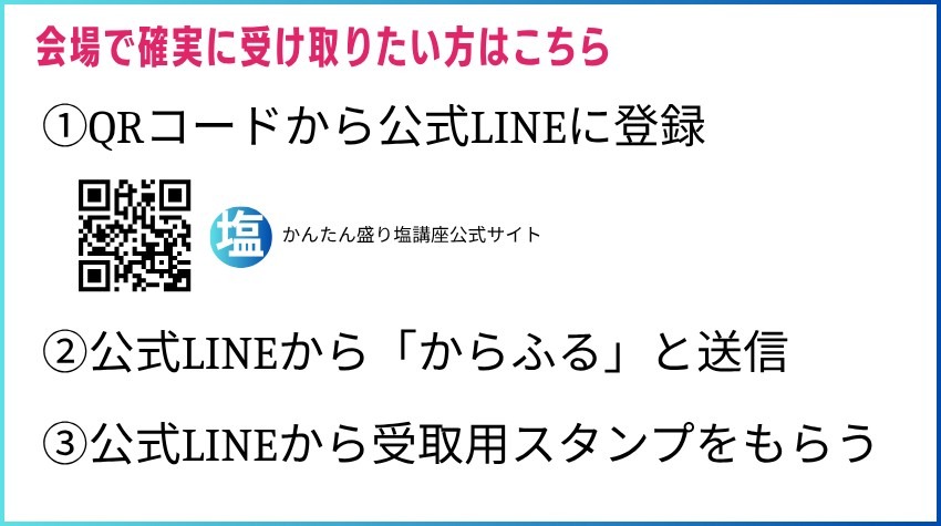 下記のQRコードから「かんたん盛り塩講座公式サイト」にアクセスし、登録いただくと