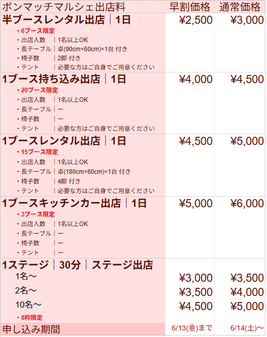 はい。ご自由に決めて頂いて結構です。なるべくイベントは体験の場でもありますので、体験価格でできるものや試食のようなものはご用意いただくことをオススメします。